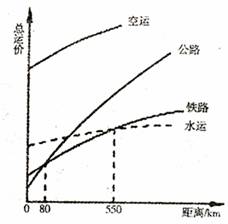 (1)当运距<80km时,最廉价的运输方式是 ,当80km<运距<550km时,最廉价的运输方式是 。