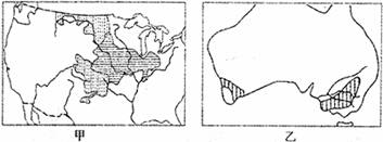 (1)甲图中阴影部分表示的农业地域类型是 ,该农业地域类型的农场一般 经营。(2分)