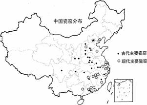 材料三 瓷器是高岭土(矿物)经过加工成型,再经高温烧制而成。下图示意为中国古代与现代陶瓷主要生产地分布。