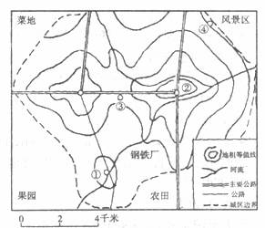 8.若要在图中的①②③④四处中选建大型仓储式超市,最好选在