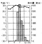 27.(11分)下图是某地的气候资料,该地所在国家的人口数量为10.41亿,自然增长率为1.41%(2002年)。分析回答: