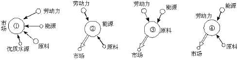 16.读下图,炼铝厂、制糖厂、电子装配厂和啤酒厂根据影响工业部门分布的因素,判断下面关于四类工业部门工业指向的表述,你认为哪组较为合理( )