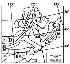 A.年800mm等降水量线 B.一月均温0℃等温线