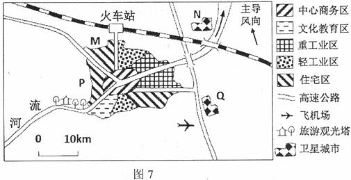 图7为我国某特大城市示意图。完成17-18题。