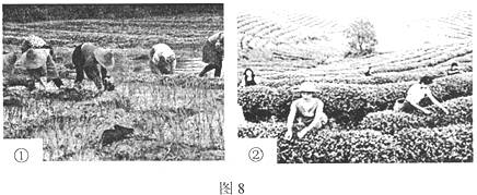 图8所示两种农事活动场景,结合此图完成19-20题。