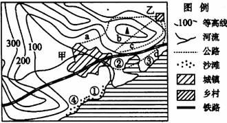 2.为了加强甲镇与乙村的联系,拟建一条公路,下图中四条规划线路中,最合理的是