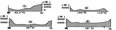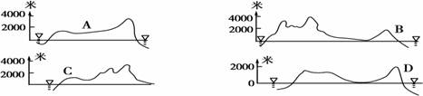 读 “我国四大盆地地形剖面图”,完成10-11题。