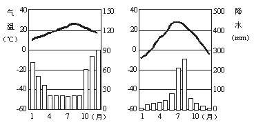 下图是雅典和北京两地的气候资料。读图回答12-13题。