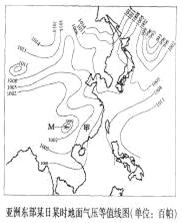 B.M地同纬度的东部海洋上空气受热上升形成高压