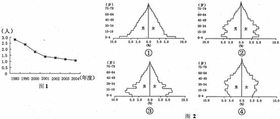 32.图1是某地区育龄妇女平均生育子女数变化曲线图。若图中所示变化趋势持续下去,最可能出现的是