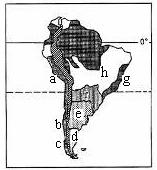 下图为“某大洲自然带分布示意图”(图中字母a-h分别代表不同的自然带类型),读图完成34-35题。