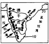 下图是德干高原位置图,箭头表示盛行风向。读后完成11-12题。