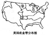 读“美国农业带分布图”,据此完成7-8题。