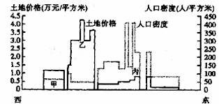 16.丙地土地价格较低,人口密度较高,应属于