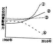17.下图为上海市重工业区位因素影响力变化示图。下列区位因素与图中①、②、③、④对应正确的是