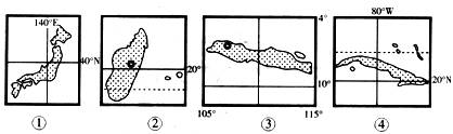 24.当北京地区坐北朝南的房屋内,正午阳光照射面积最大时,图中各岛正午太阳高度由大到小排列正确的是