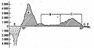 大洋名称:F E 其海底地形称 ,形成原因是 。(7分)