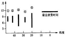 读我国山水风景区最宜欣赏时间与纬度关系图,回答8-9题: