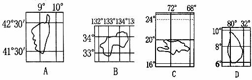 6.下面四幅地图中,比例尺最大的一幅是 ( )