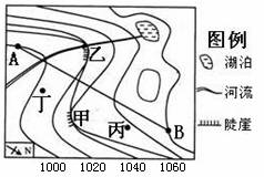 10.下图为某山地的局部等高线图,等高距为20米,AB为空中索道,乘索道上行的方向是: