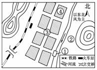 7.从城市功能区合理布局的角度考虑,若在图中分别布局中心商务区、住宅区、城郊农业区、港口码头四个功能区,则①、②、③、④对应的功能区是