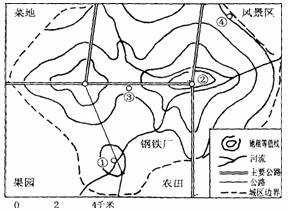 30.该区域中心附近的某机械制造企业要搬迁,在①②③④四地中最适合迁往的地点是: