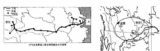 (2)试分析“川气东送”工程对输出地的地理意义。(3分)