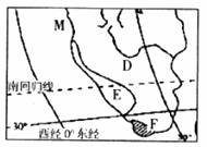 12.E地为纳米布沙漠,它沿非洲西南大西洋海岸延伸2100千米,该沙漠最宽处达160千米,而最狭处只有10千米,其沿海岸线延伸的主要原因是