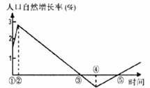 下图是“某国人口自然增长率随时间变化示意图”,读图完成15-16题。