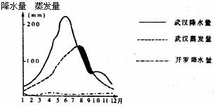 下图是同处北纬30°的开罗与武汉降水量与蒸发量曲线圈。回答30-31题.