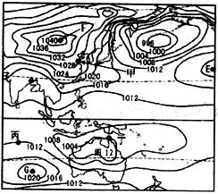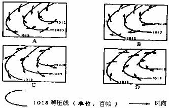 读局部地区某时气压(单位:百帕)分布图,回答32-33题。