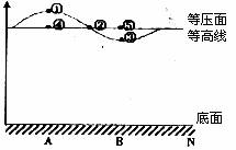 A.①与⑤两点气压相比,⑤大 B.五点中④地气压最低