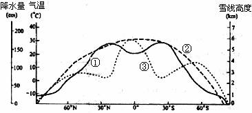 39.表示多年平均雪线高度、气温、降水量的曲线依次是
