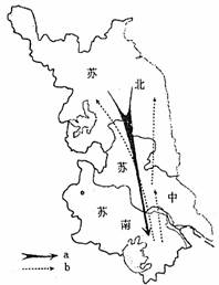材料一 江苏是我国经济大省,但省内区域经济发展水平并不平衡。为了促进共同富裕,江苏省制定了苏北崛起、振兴苏中的科学发展战略。下图中的箭头a、b分别表示江苏省内的人口流动和产业转移的方向。