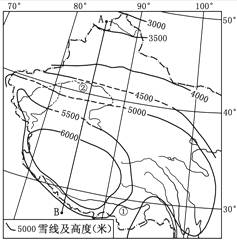 (1)沿图中AB线雪线高度的变化规律是什么?(2分)