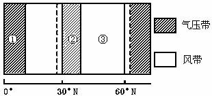 读某日北半球部分气压带.风带分布示意图,完成6-8题。