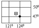 A.甲地在乙地的东北方 B.甲图所示地域范围和乙图一样大