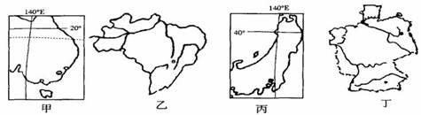 读局部地区经纬网示意图(图幅相同),乙地西部临海。完成10-11题。