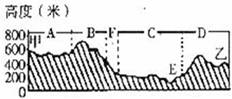 图为沿甲(49.5ON,117.5OE)、乙(44.5ON,131OE)两地的地形剖面图,读图回答3-4题。