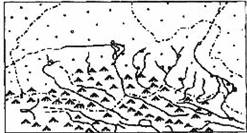 下图实线是地形等高线,虚线是潜水面等高线,等高距为5米,甲处为一口水井。读图回答l0-11题。