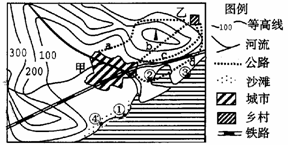 2.为了加强乙村与甲城的联系,拟建一条公路,图中四条规划线中,最合理的是