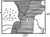 (1)分析A、B两区域人l:1密度差异的自然原因。