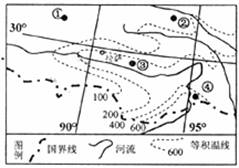 我国某区域“日平均气温≥5℃的积温情况如图所示。读图,完成3-4题。