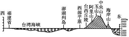 54.读“台湾岛沿北回归线的地形剖面图”,回答下列问题。(8分)