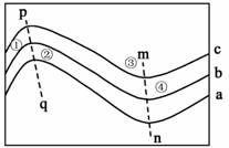 14.若图中曲线为等温线,图示地区为大范围的、海陆兼备的地区,pq位于陆地,mn位于海洋,则此时 ( )