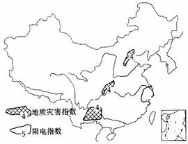 下图为中央气象台发布的某日我国地质灾害指数和限电指数分布示意图。读图回答19-20题。