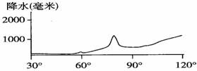 读图11“30°N纬线上部分地区的降水分布”,回答21-22题。