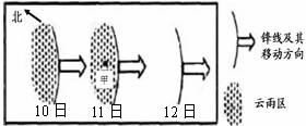 锋线指锋面与地面的交线,下图为“2月10-12日某地区锋线移动情况”,请回答23-25题。