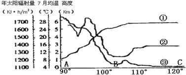 A.①地势②年太阳辐射量③7月均温 B.①地势②7月均温③年太阳辐射量
