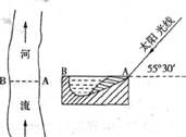 19.图为某一河流及其河床AB处的剖面示意图。某考察队员于3月21日正午(地方时),在A处观测到的正午太阳高度角为55030’,且太阳光线与河岸垂直。关于该地的地理纬度和河流的流向说法正确的是